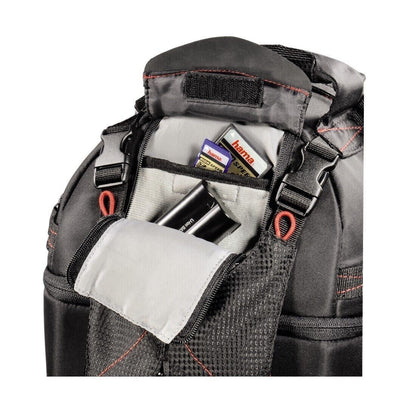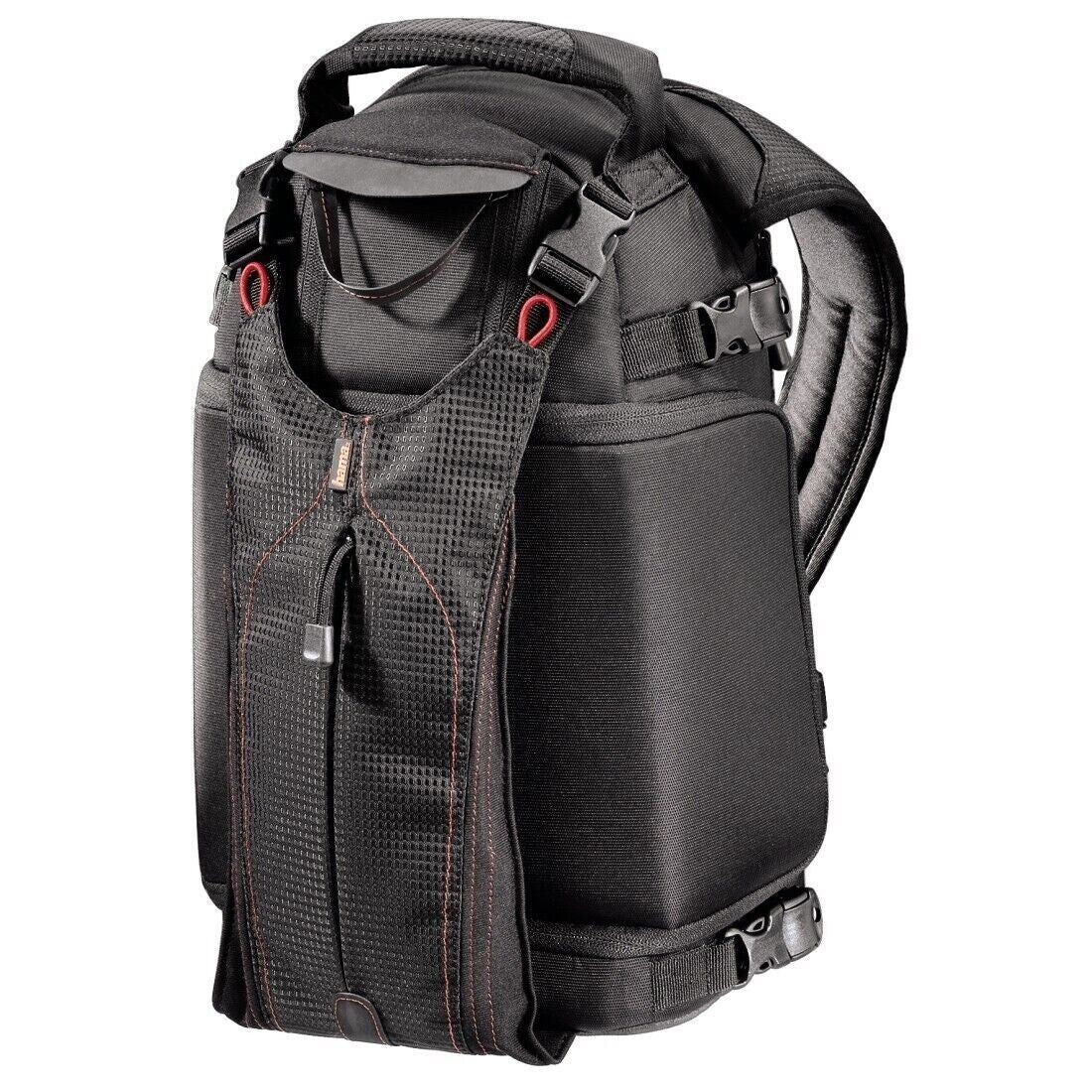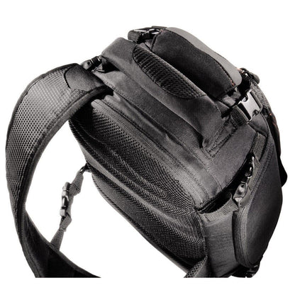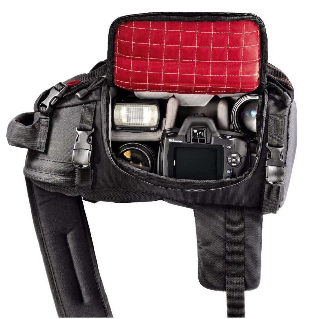 Suitable for most cameras, lens and accessories, this hard-wearing, rubberized, water-repellent and easy-to-clean backpack will keep your camera protected from the elements such as dirt and grime. The stylish and sleek black and red spacious design comes with one shoulder strap for maximum flexibility and a hip belt, back and handle for easy, comfortable carrying, along with an adjustable padded shoulder strap so your camera can be taken with you wherever you go. Furthermore, when pulled forward over the left shoulder, it offers immediate access to the camera for your ultimate convenience whilst the stabilising strap can be used to secure the backpack from slipping.