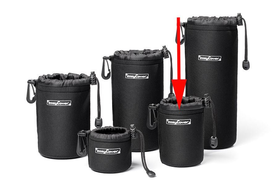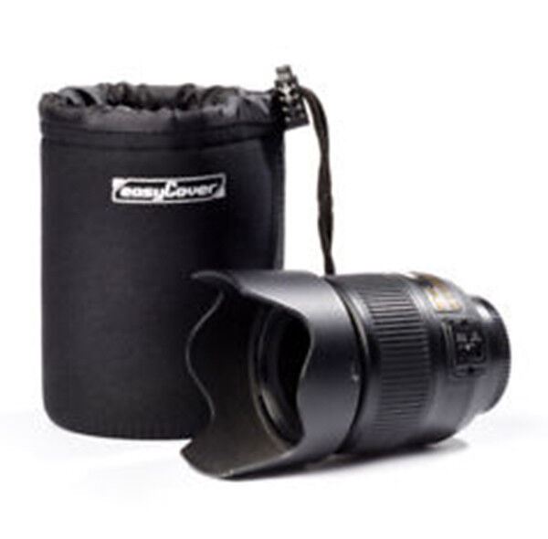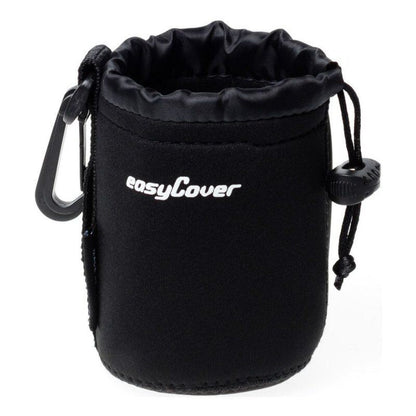 Easycover Neoprene Lens Case Small in Black Brand new UK Stock, with full packaging and guaranteeeasyCover lens cases are available in 5 sizes, in black and camouflage pattern designs. This case is the BLACK SMALL size. Sturdy lens pouch manufactured from soft neoprene to provide both light weight and excellent impact protection. Drawcord closure with both snap hook and beltloop. Approximate Dimensions: 100mm high, 75mm diameter. Suitable for standard lenses, M4/3" lenses, small zooms & lenses up to 100mm length and 70mm diameter. Weight 42g. Lens shown for illustration only. This product is a single lens pouch in small size.