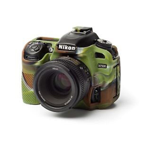EasyCover Camera Case for Nikon D7500 in Camouflage Brand New UK Stock, in original packaging with full Guarantee As most important and most-used implement of every photographer, the camera needs to withstand highest impacts day-to-day. Environmental impacts such as humidity and dust as well as unavoidable scratches and pushes can lead to unattractive signs of wear. A Protection Cover for the camera can prevent such damages. Like a second skin, the easyCover fits over your camera and protects it simply and reliably. The silicone cover can be put over easily over your Canon camera. All operating functions of your camera can be found 1:1 on the Cover, so that the full functionality is guaranteed without restrictions. Certainly, the access to memory card and battery compartment is also given. Additionally, the anti-skid grip surfaces on the most important parts provide compact grip and secure stability. As to protect your camera display as well, two self-adhesive foils are also included in delivery. While your camera enjoys highest protection, you can pay attention to the really important things: Impressing pictures! This easy to fit custom made silicone case is molded specifically for each camera. It provides excellent protection without compromising the ability to access the controls. Main Features: