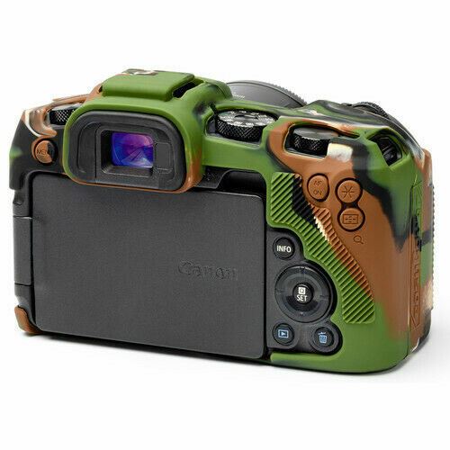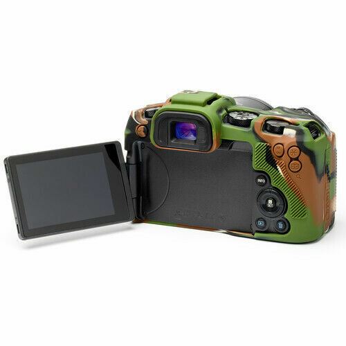 EasyCover camera case for Canon EOS RP in Camouflage Brand New UK Stock, in original packaging with full Guarantee As most important and most-used implement of every photographer, the camera needs to withstand highest impacts day-to-day. Environmental impacts such as humidity and dust as well as unavoidable scratches and pushes can lead to unattractive signs of wear. A Protection Cover for the camera can prevent such damages. Like a second skin, the easyCover fits over your camera and protects it simply and reliably. The silicone cover can be put over easily over your Canon camera. All operating functions of your camera can be found 1:1 on the Cover, so that the full functionality is guaranteed without restrictions. Certainly, the access to memory card and battery compartment is also given. Additionally, the anti-skid grip surfaces on the most important parts provide compact grip and secure stability. As to protect your camera display as well, two self-adhesive foils are also included in delivery. While your camera enjoys highest protection, you can pay attention to the really important things: Impressing pictures! This easy to fit custom made silicone case is molded specifically for each camera. It provides excellent protection without compromising the ability to access the controls. Main Features: