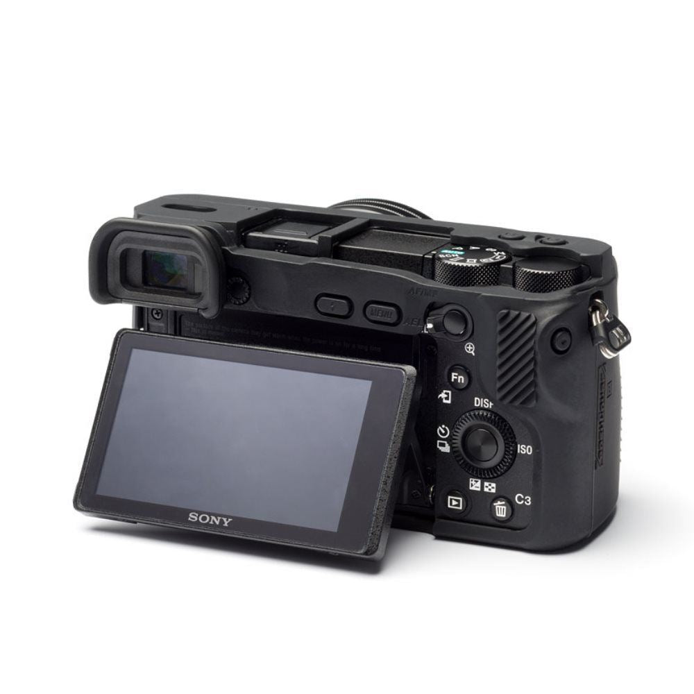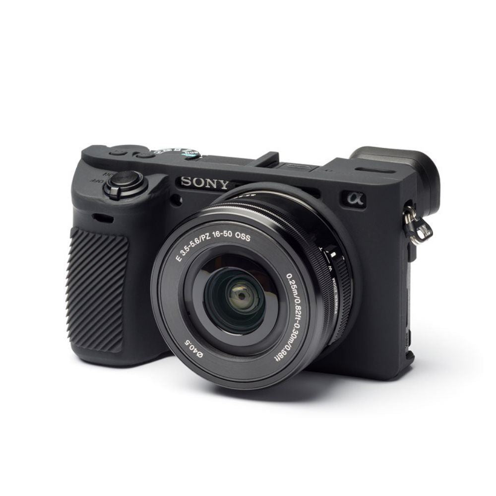 EasyCover camera case for Sony A6500 in Black Brand New UK Stock, in original packaging with full Guarantee As most important and most-used implement of every photographer, the camera needs to withstand highest impacts day-to-day. Environmental impacts such as humidity and dust as well as unavoidable scratches and pushes can lead to unattractive signs of wear. A Protection Cover for the camera can prevent such damages. Like a second skin, the easyCover fits over your camera and protects it simply and reliably. The silicone cover can be put over easily over your Sony camera. All operating functions of your camera can be found 1:1 on the Cover, so that the full functionality is guaranteed without restrictions. Certainly, the access to memory card and battery compartment is also given. Additionally, the anti-skid grip surfaces on the most important parts provide compact grip and secure stability. As to protect your camera display as well, two self-adhesive foils are also included in delivery. While your camera enjoys highest protection, you can pay attention to the really important things: Impressing pictures! This easy to fit custom made silicone case is moulded specifically for each camera. It provides excellent protection without compromising the ability to access the controls. Main Features: