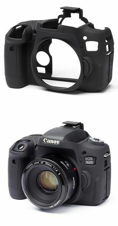 EasyCover camera case for Canon EOS 760D Brand New UK Stock, in original packaging with full Guarantee As most important and most-used implement of every photographer, the camera needs to withstand highest impacts day-to-day. Environmental impacts such as humidity and dust as well as unavoidable scratches and pushes can lead to unattractive signs of wear. A Protection Cover for the camera can prevent such damages. Like a second skin, the easyCover fits over your camera and protects it simply and reliably. The silicone cover can be put over easily over your Canon camera. All operating functions of your camera can be found 1:1 on the Cover, so that the full functionality is guaranteed without restrictions. Certainly, the access to memory card and battery compartment is also given. Additionally, the anti-skid grip surfaces on the most important parts provide compact grip and secure stability. As to protect your camera display as well, two self-adhesive foils are also included in delivery. While your camera enjoys highest protection, you can pay attention to the really important things: Impressing pictures! This easy to fit custom made silicone case is moulded specifically for each camera. It provides excellent protection without compromising the ability to access the controls. Main Features: