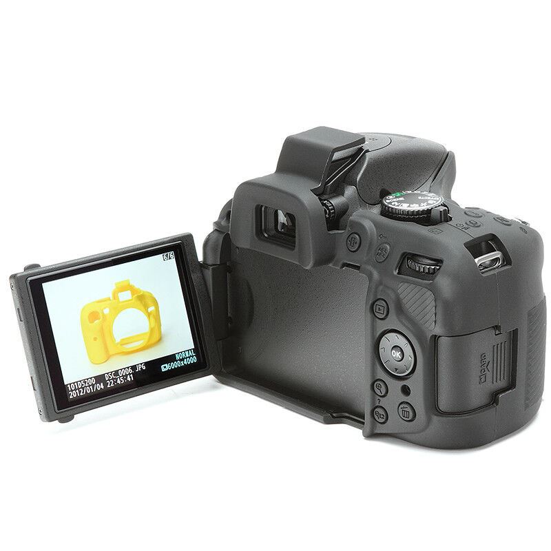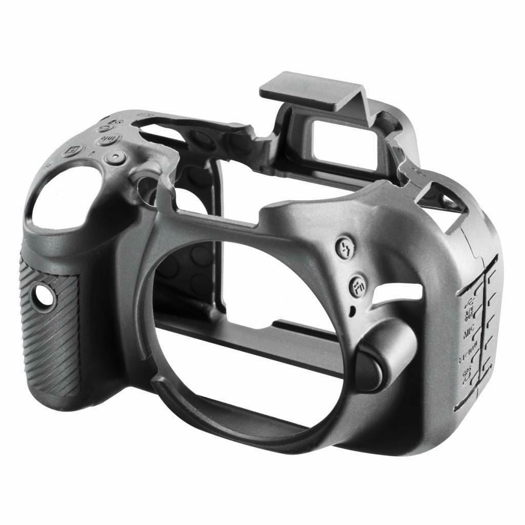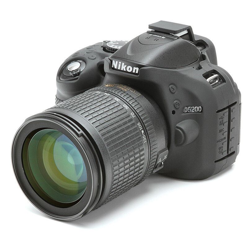 EasyCover camera case for Nikon D5200 Brand New UK Stock, in original packaging with full Guarantee As most important and most-used implement of every photographer, the camera needs to withstand highest impacts day-to-day. Environmental impacts such as humidity and dust as well as unavoidable scratches and pushes can lead to unattractive signs of wear. A Protection Cover for the camera can prevent such damages. Like a second skin, the easyCover fits over your camera and protects it simply and reliably. The silicone cover can be put over easily over your Canon camera. All operating functions of your camera can be found 1:1 on the Cover, so that the full functionality is guaranteed without restrictions. Certainly, the access to memory card and battery compartment is also given. Additionally, the anti-skid grip surfaces on the most important parts provide compact grip and secure stability. As to protect your camera display as well, two self-adhesive foils are also included in delivery. While your camera enjoys highest protection, you can pay attention to the really important things: Impressing pictures! This easy to fit custom made silicone case is moulded specifically for each camera. It provides excellent protection without compromising the ability to access the controls. Main Features: