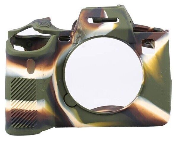 EasyCover camera case for Sony A1 in Camouflage Brand New UK Stock, in original packaging with full Guarantee As most important and most-used implement of every photographer, the camera needs to withstand highest impacts day-to-day. Environmental impacts such as humidity and dust as well as unavoidable scratches and pushes can lead to unattractive signs of wear. A Protection Cover for the camera can prevent such damages. Like a second skin, the easyCover fits over your camera and protects it simply and reliably. The silicone cover can be put over easily over your Sony camera. All operating functions of your camera can be found 1:1 on the Cover, so that the full functionality is guaranteed without restrictions. Certainly, the access to memory card and battery compartment is also given. Additionally, the anti-skid grip surfaces on the most important parts provide compact grip and secure stability. As to protect your camera display as well, two self-adhesive foils are also included in delivery. While your camera enjoys highest protection, you can pay attention to the really important things: Impressing pictures! This easy to fit custom made silicone case is moulded specifically for each camera. It provides excellent protection without compromising the ability to access the controls. Main Features: