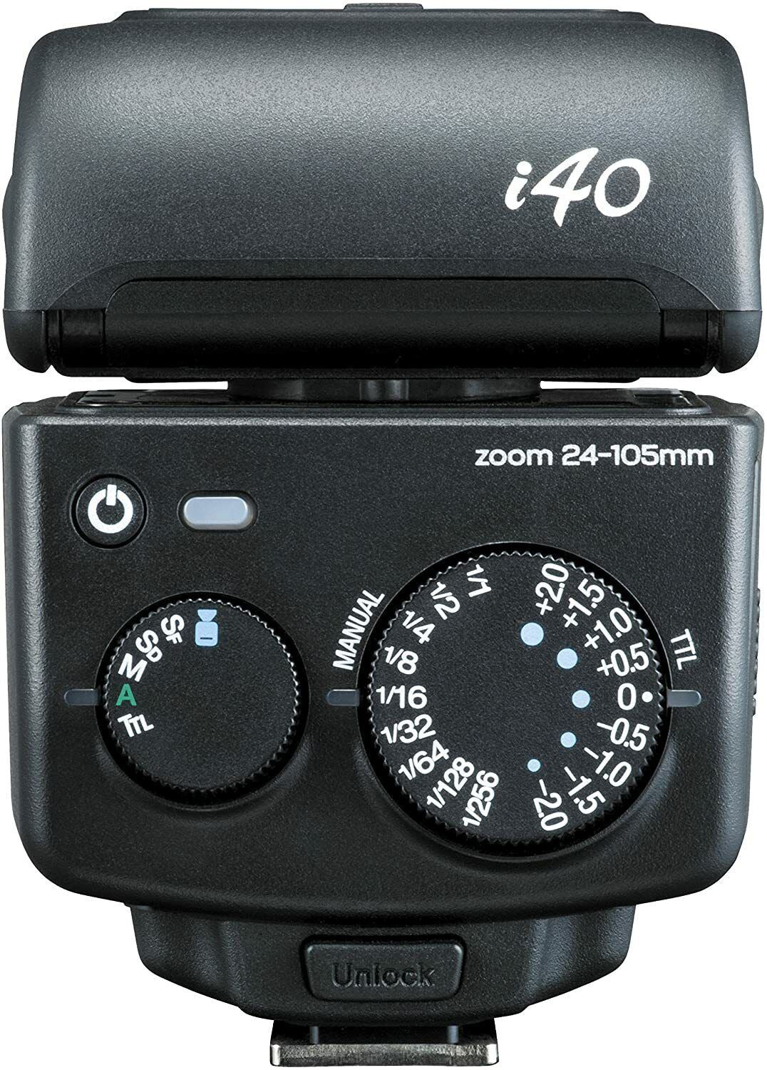Don't be deceived by the Nissin i40's svelte dimensions: This mini-marvel packs a Guide Number of 40 at 105mm, video lighting adjustable over 9 stops (a real boon at special events at gigs, where you can freely switch between videography and still photography), and a specification replete with high-end features. Although perfectly proportioned for smaller DSLRs and compact system cameras, the i40 is equally at home on full size DSLR models, weighs only 203g and fits easily into a pocket. The flash head features 180° horizontal and 90° vertical rotation and is powered by 4x AA batteries (not included) - which provide sufficient power for over two hundred full-power flashes or three and a half hours of video lighting. Why weigh yourself down, when this little wonder does it all?