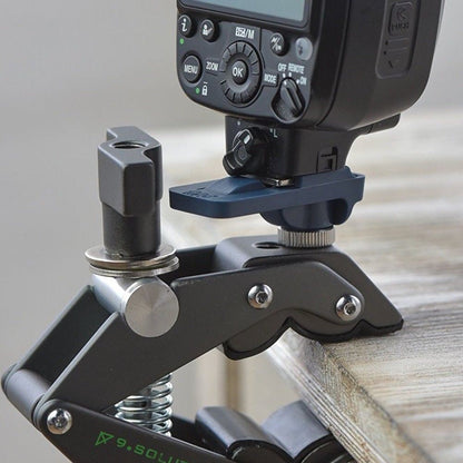 Mount anything with a hotshoe; your flash,radio trigger, light panel or hotshoe mic to any tripod and all light-stands!