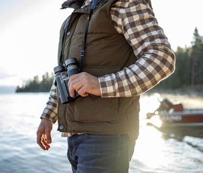 - Lightweight and strong magnesium-alloy chassis helps to reduce fatigue when wearing the binoculars around the neck or holding them up to the eyes