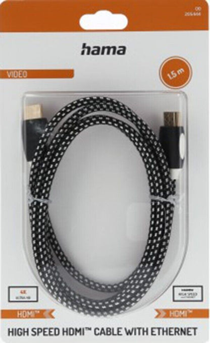 Hama 1.5m HDMI to HDMI Fabric Cable #205444 High Quality Gold Plated (UK) BNIP