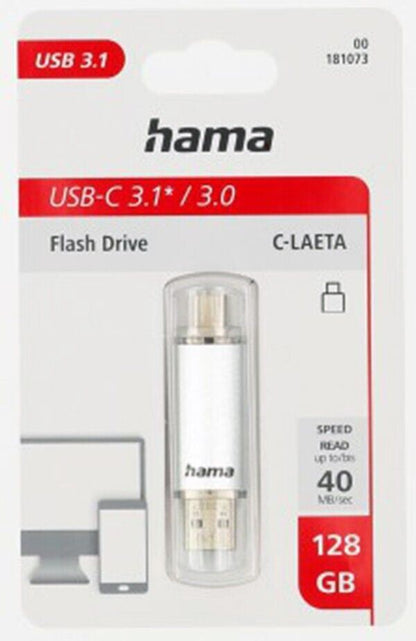 Hama 128Gb C-Laeta USB Stick USB-C USB A 3.1 Pen Drive silver #181073 (UK) BNIP