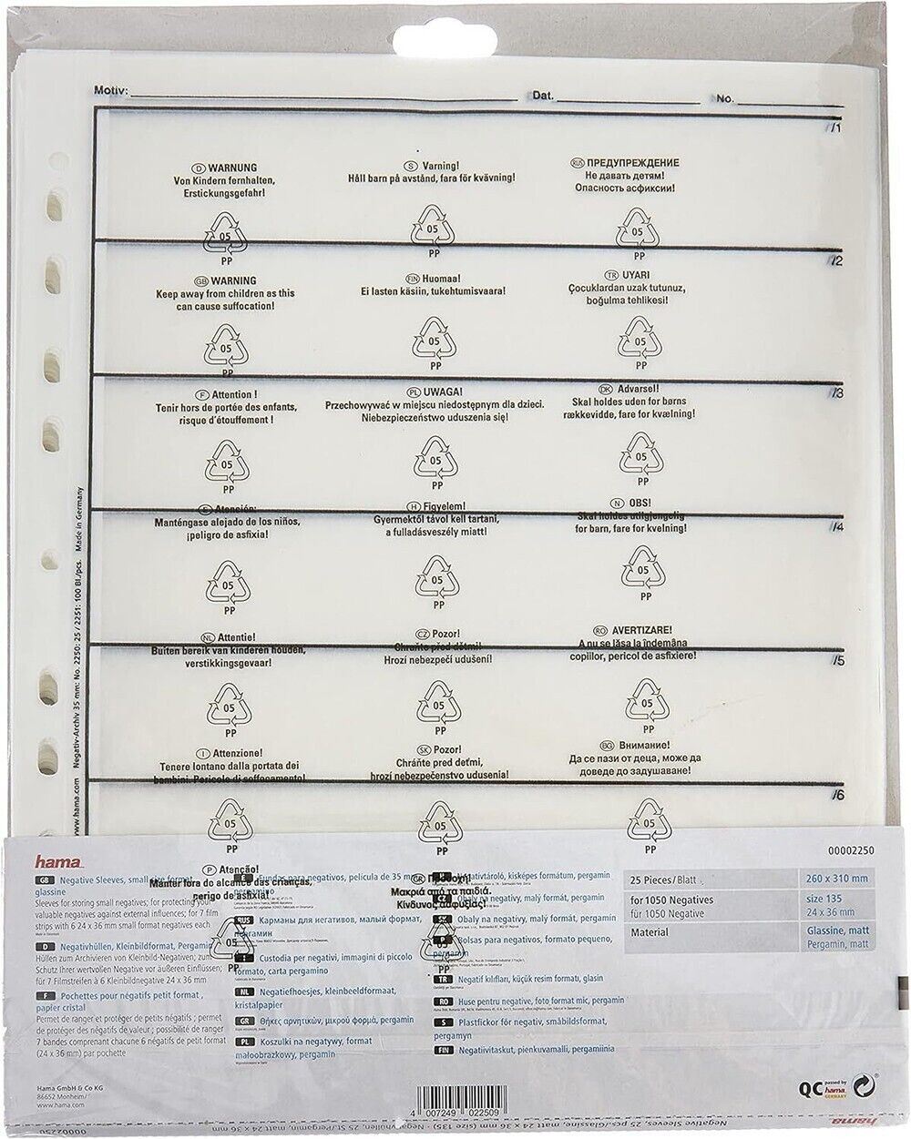 HAMA 135mm NEGATIVE STORAGE Parchment PAGES 25 pages, 7 strips for Ring binder
