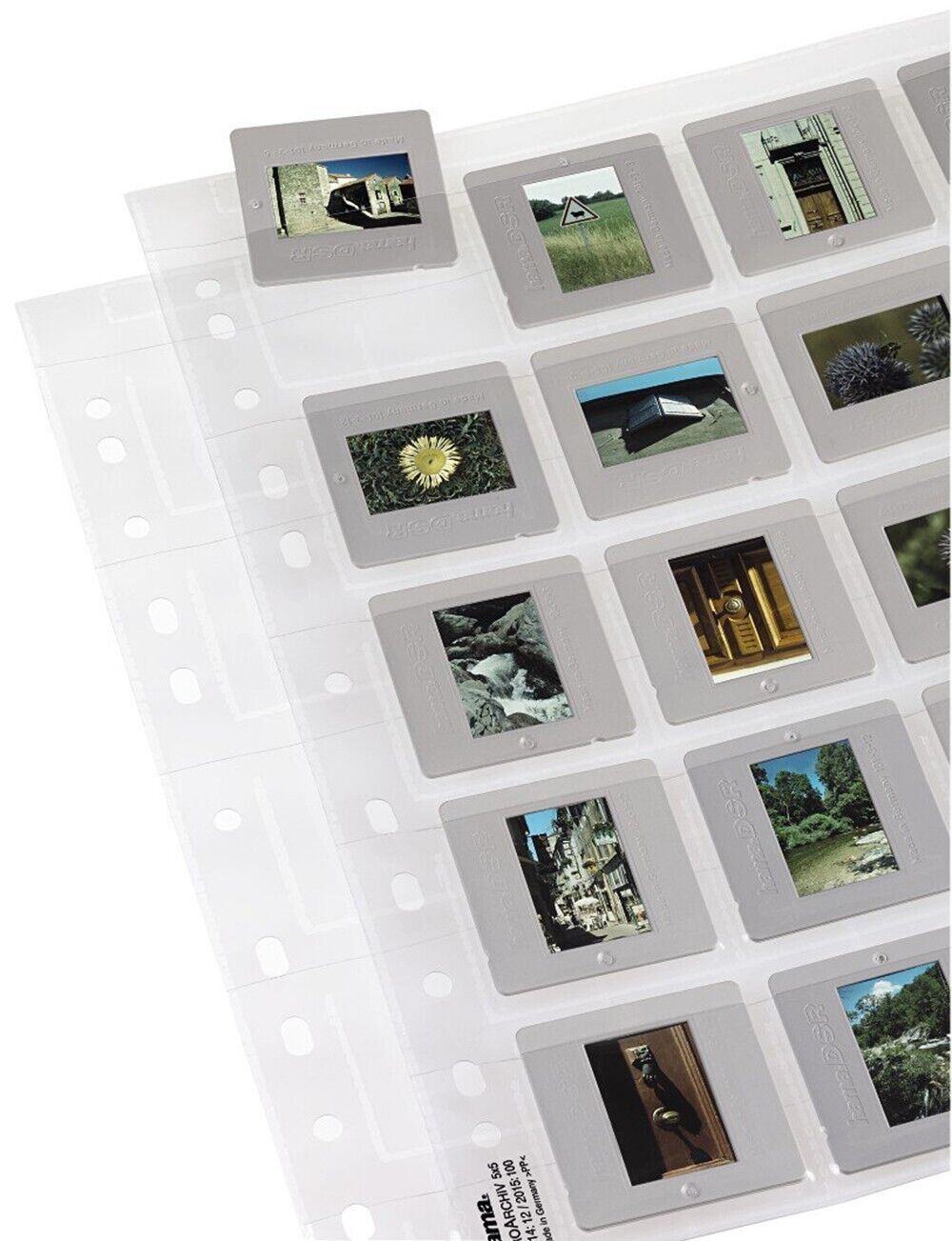 Hama Slide Storage Sleeves Each Sleeve Holds 20 Mounted Framed 135mm Slides 5 x 5cm (Pack 25 Total = 500 Slides). Sleeves for storing small negatives ,Protect your valuable slides against outside influences ,For 2 slide frames, thickness: up to 2.3 mm, without glass ,Clear