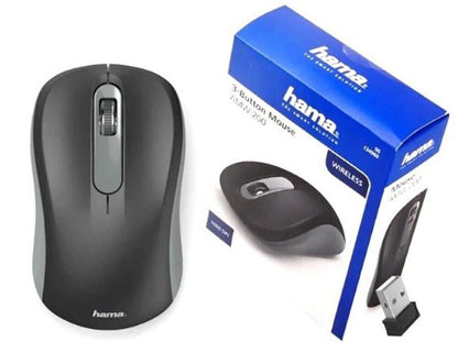Hama AMW-200 Wireless Optical 3 Button Mouse Black/Grey #134960 (UK Stock) BNIB