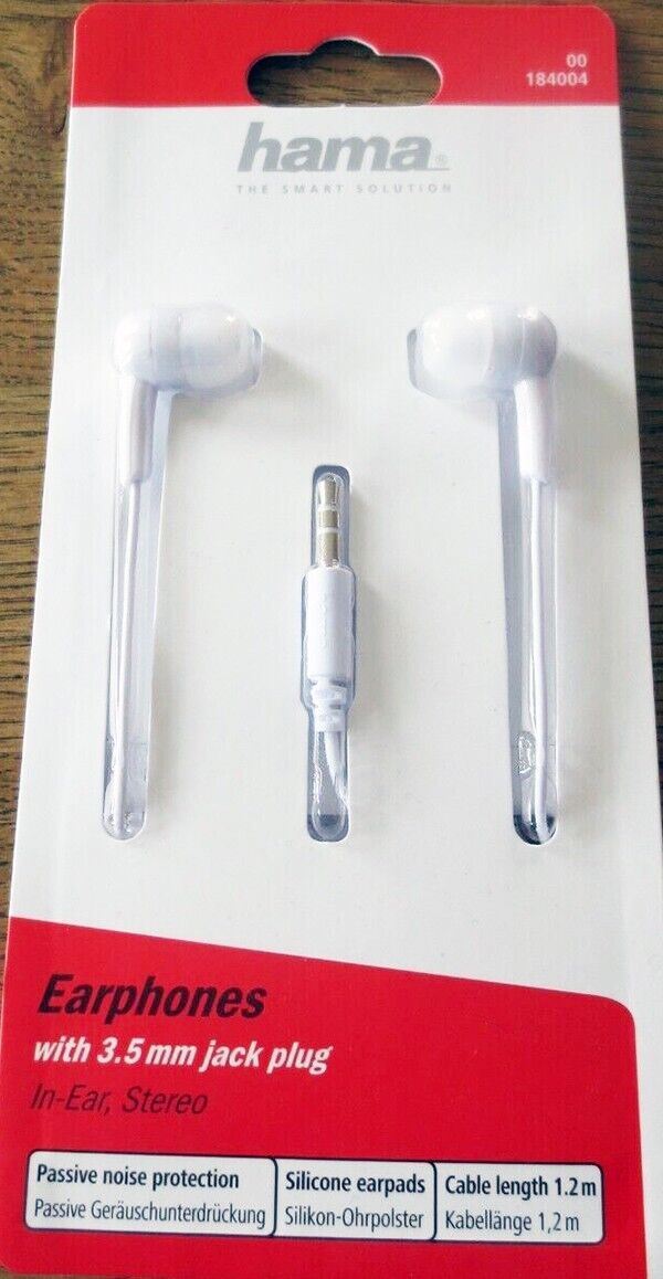 Hama "Basic 4 Music" in-ear stereo Head earphones white #184004 (UK Stock) BNIP