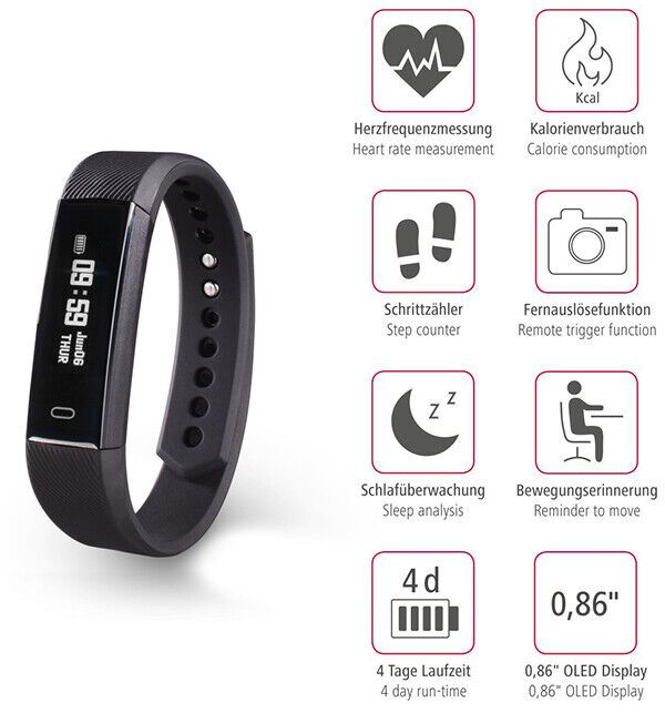 Get started and do your body some good! The fitness tracker means you always have your personal motivator with you. With pulse meter, step counter, calorie consumption and sleep analysis, you're fully informed about your fitness and physical functions. Now there are no more excuses!