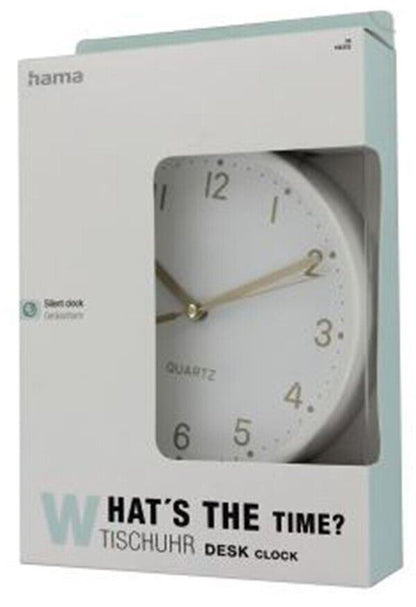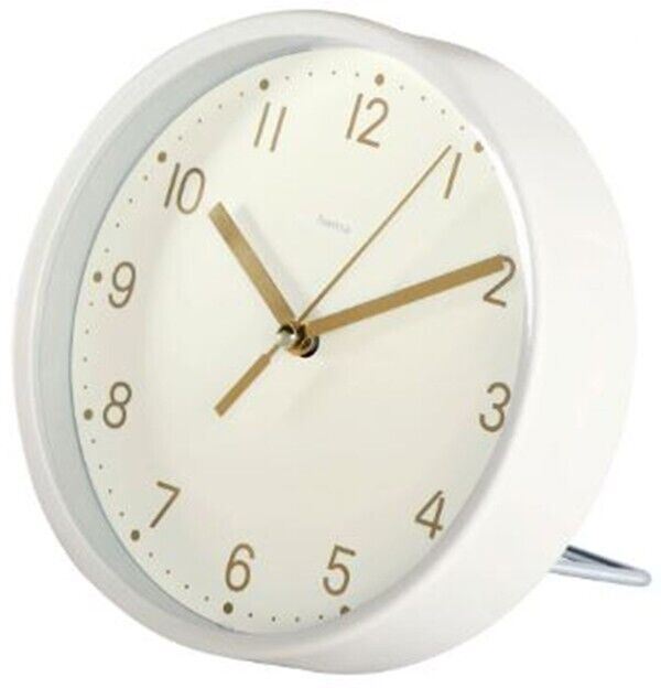 Hama Golden Desk Clock 16cm Silent Quiet in White Sweeping hands #186302 (UK)NEW
