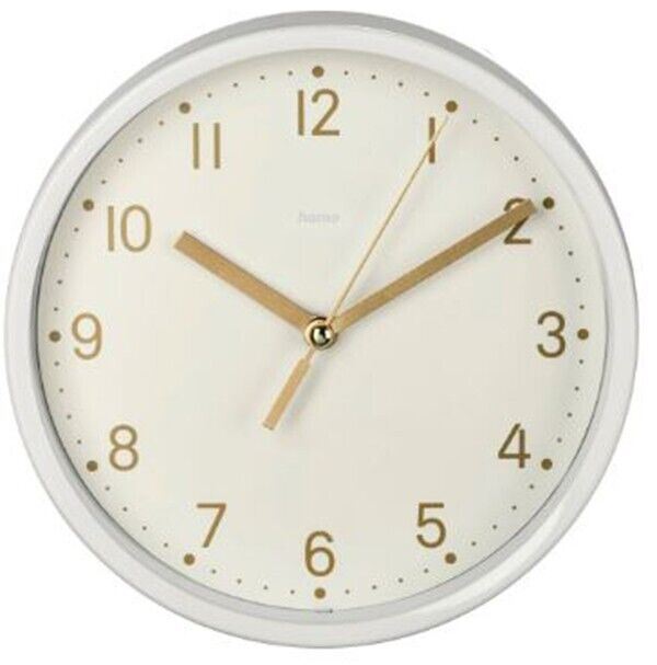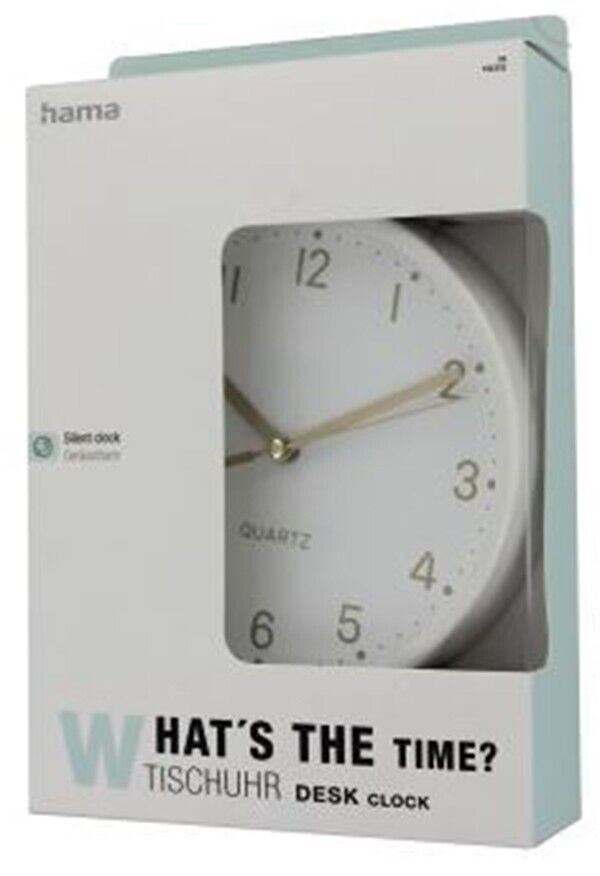 Hama Golden Desk Clock 16cm Silent Quiet in White Sweeping hands #186302 Specification Colour Dial Colour of the Housing White Product Division Home & Living Seconds display Second Hand Additional Functions Base Cover material Glass Display Analogue Material Body Plastic Material Model Table Clock, Wall Clock Operating Mode Manual Special Feature Quiet Depth 4.5 cm Diameter 16 cm Weight 290 g Battery Type AA Mignon Number of Batteries 1 What's in the Box Warranty 2 years legal warranty only