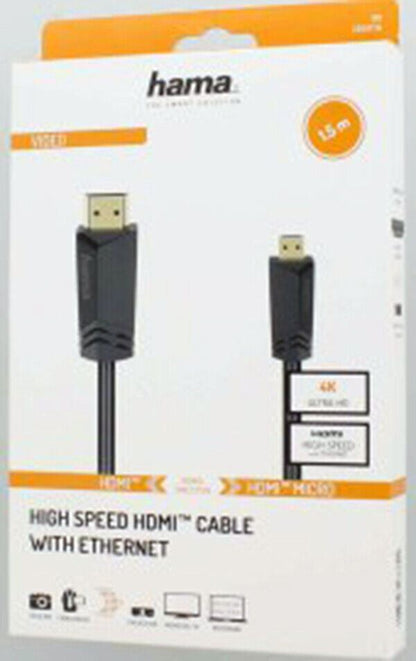 Hama High-Speed HDMI� Cable Type-A Plug - Type-D Plug (Micro) Ethernet 1.5 m UK