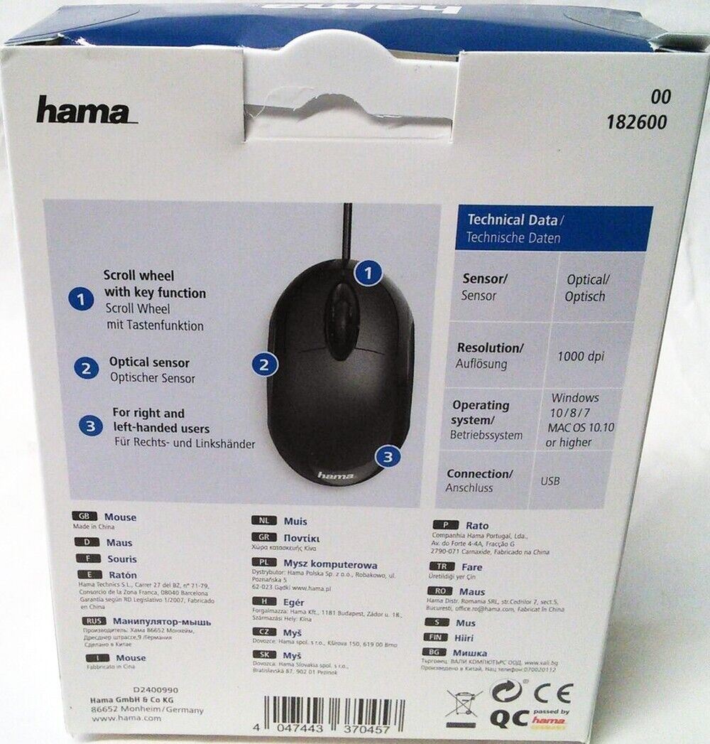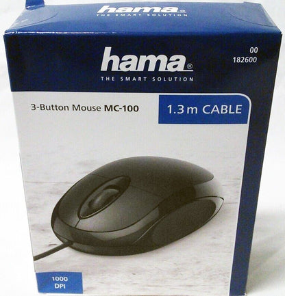 Hama MC-100 Wired USB Mouse/PC/MAC/Travel/Compact/Small/3 Button/Black 182600 UK
