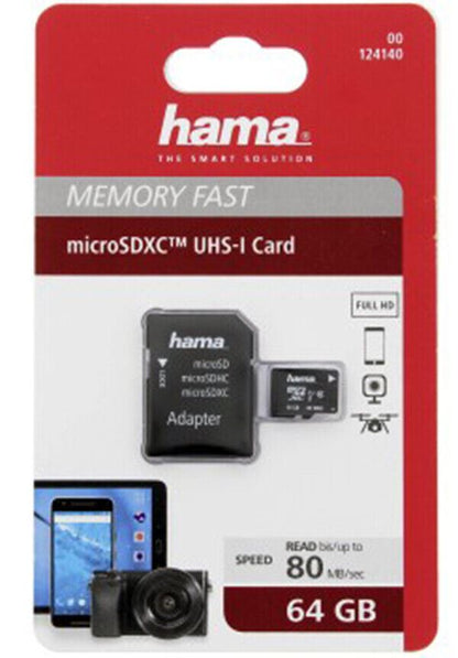 Hama micro SDXC 64GB Memory Card Class 10 UHS-I 80MB/s + Adapter (UK Stock) BNIP