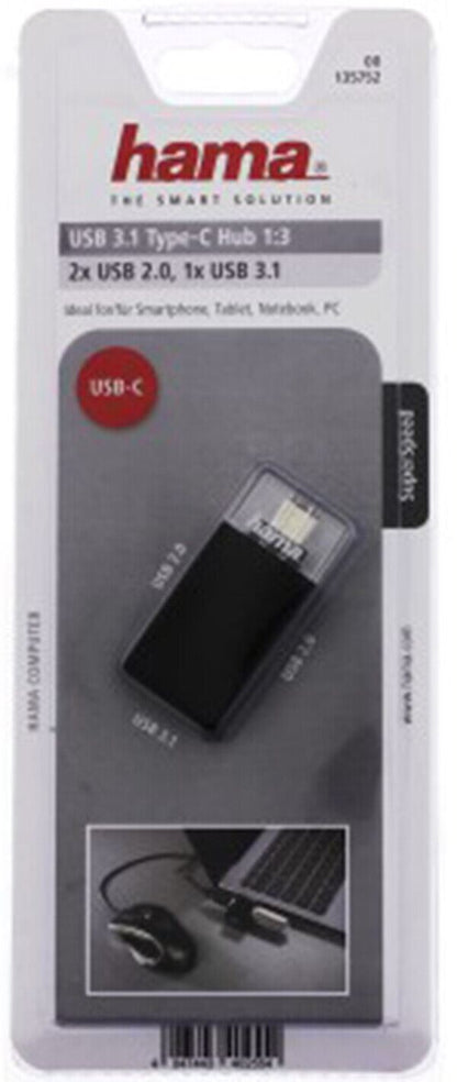 Hama Pocket USB-C Hub, 3 Ports, USB-A (2x 2.0) (1x 3.1) #135752