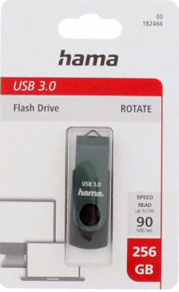 Hama Rotate 256Gb USB Flash Drive USB 3.0 90MB/s Petrol Blue Memory Stick (UK)
