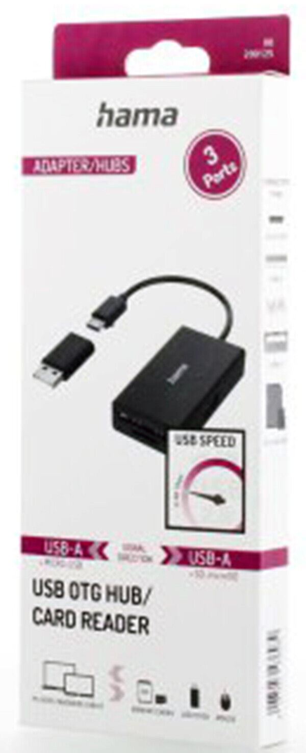 Hama USB Hub Card Reader, 3 Ports, USB-A, SD, microSD, Micro USB #200125 (UK)