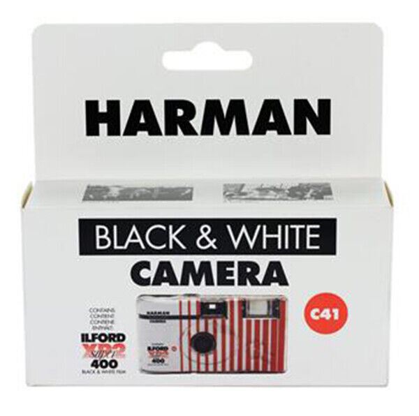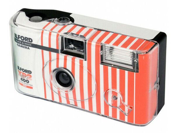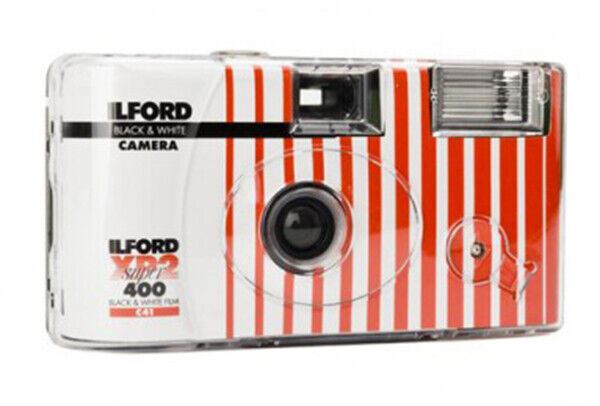 Single use, black & white camera with 27 exposures of XP2 SUPER film and a built-in flash.