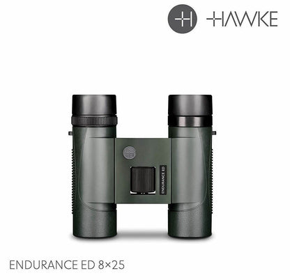 Hawke Endurance ED 10 x 25 Waterproof Compact Binoculars #36111 The Endurance range of strong binoculars for adults from Hawke are head and shoulders above most others. Stunning optics provide crisp, clear and bright images with incredible light transmission. Lenses in the Endurance ED 8x25 Compact Binoculars are made from Extra Low Dispersion (ED) glass to minimise colour fringing at the edges, for sharper vision. Waterproof and lightweight these pocket binoculars are twin hinged to with a precision mechanism that folds easily. Specification • Power: 10× • Objective Diameter: 25mm • Lens Coating: Fully Multi-Coated (FMC) • Field of View: m @1000m / yds @1000yds: 96m / 288ft • Close Focus: 2m / 6.6ft • Eye relief: 13mm / 0.5″ • Height: 108mm / 4.3″ • Weight: 315g / 11.1oz • Waterproof, fog proof and Nitrogen purged