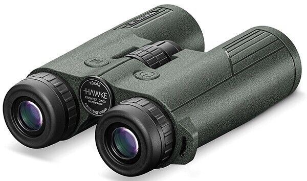 Hawke Sport Optics 10 x 42 Frontier LRF Binoculars Green #38615 Laser Rangefinder · Fully Multi-Coated Optics · High Light Transmission With True Colour Optics · 8x Magnification And An Adjustable Dioptre · OLED Display - 6 Brightness Levels · Auto Shut Off Battery Save Feature · Accuracy ± 1 Metre · Water Repellent Lens Coatings · Magnesium Alloy Chassis · Replaceable Twist-Up Eye Cups With Position Stops · Supplied With Binocular Harness Pack. Nitrogen purged. Waterproof. Fog proof. Hawke No-Fault Lifetime Warranty. Optical System =System H7 Magnification =10x Objective Lens =42mm Colour =Green Lens Coating =Wide Band / Anti-reflection / Fully Multi-Coated Lenses with Water Repellent Coating Field of View =315ft @1000yds / 105m @1000yds Field of View = 6° Apparent Field of View = 60° Eye Relief = 0.6in / 16mm Exit Pupil = 0.17″ / 4.2mm Interpupillary Distance = 2.2 - 3″ / 2.2 - 3mm Close Focus = 33ft / 10.1m Prism Type = Patented Prism System with Beam Split Coating Eye Cups = Twist-Up (Replaceable) Diopter Type = Left Eye Tripod Mounting Thread = No Height = 7″ / 178mm Width = 4.5 - 5.4″ / 115 - 138mm Weight = 37oz / 1048g Modes = Standard // Horizontal Distance // Angle // Rain / Near // Hunt Display = OLED Range (yds) = 11 - 2515 Range (m) =10 - 2300 Accuracy (yds) = ±1 Accuracy (m) = ±1 Angle Range = 90º Battery = 3V CR2 Waterproof IPX7