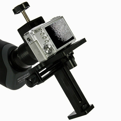 Hawke universal Digiscoping Digiscope Camera Adaptor Small Eyepiece #64024 If you can't use conventional T-ring-style adapters on your compact camera but still want to use a spotting scope as a powerful telephoto lens, the small Hawke Sport Optics Universal Digiscoping Adapter is the ideal digiscoping solution. This adapter is compatible with most spotting scopes equipped with eyepieces that have a 28-45mm (1.1-1.77") outside diameter and is fully adjustable to fit a wide variety of cameras. The adapter's clamp tightens down on the scope's eyepiece, and its three-axis adjustable platform allows you to safely and securely position your camera lens directly in line with the eyepiece, so you can capture photos and video through the spotting scope. What’s Included? Hawke Sport Optics Universal Digiscoping Adapter for Small Eyepieces