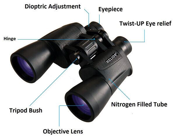 Helios 10 x 50 Solana Rubber Armoured Porro Prism Binocular