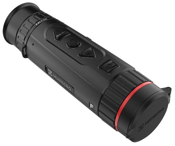 HIK Micro Falcon FH35 35mm 384 x288 12µm 20mk Hand Held Thermal Imager Monocular Welcome to the Falcon series of advanced thermal monoculars - Boasting an industry-leading SUB 20 NETD sensor paired with a high-quality F1.0 lens the Falcon delivers the highest-performance thermal sensor available on the commercial market. This translates into an exceptionally high-quality image even in the harshest of weather conditions. The highly thermally sensitive 384x288px 12um SUB 20 NETD sensor ensures perfect detail recognition. Capable of detecting the smallest details like animal hair, subtle physical characteristics and information from the surroundings like branches and leaves – building you a reliable picture of your target and its surroundings. The Falcon replaces the popular Owl series and builds on the easy-to-use, ambidextrous chassis with a highly robust magnesium housing and four buttons that control all functions with ease, even in total darkness. Powered by a removable 18650 battery and with a run time of up to 6 hours the Falcon is ready for the longest hunting trips. The eyecup would feel at home on a high-quality pair of binoculars, comfortably holding the display in the correct position, giving you a comfortable view of the large HD OLED screen. The Falcon is the first HIKMICRO product to offer Image Pro mode. When activated image pro boosts the detail in the image both for animals and the background. In addition to Image Pro, the Falcon also boasts all of the normal software features found in HIK products including a choice of 4 colour pallets and access to the HIKMICRO Sight app which allows you to stream, control and record from your thermal monocular. The built-in 64GB memory also allows you to save images and videos directly onto the monocular. Specification MAIN Sensor: 384x288px @ 12µm Objective Lens (Focal Length): 35 mm Detection Distance: 1800 m SENSOR Type: VOx Uncooled Focal Plane Arrays Resolution, pixels: 384 × 288 px Pixel pitch, µm: 12µm Frame rate, Hz: 50 Hz NETD: <20mK THERMAL OPTICS Objective lens: F1.0 Magnification (Optical): 3 x Magnification (Digital): 1x, 2x, 4x, 8x Field of view: 7.53° × 5.65° (H × V) DISPLAY Type 10mm, OLED Resolution, Pixels: 1024 x 768 Colour Palettes: Black Hot, White Hot, Red Hot, Fusion VIDEO RECORDER Build in memory, Gb: 64 Gb Image Capture: Yes Video Record: Yes ADDITIONAL FEATURES Image Pro Mode: YES Hot Tracking: YES WiFI hot spot: YES HIKMICRO Connect App support: YES ENVIRONMENTAL Degree of protection, IP code: IP67 Dust protection: Protected against dust ingress Water protection: Protected against temporary submersion in water Operating temperature range: -30 °C to 55 °C WEIGHT & SIZE Dimensions, mm: 188 mm x 58 mm x 65 mm Weight, kg: 0.5 kg POWER SUPPLY Battery type: 18650 Removable battery Operating time on battery (WiFi & Hot tracking disabled): 7 Hours continuous running Charging interface: External charger (Supplied) Warranty Period Main Unit: 3 Years SKU: HM-FH35