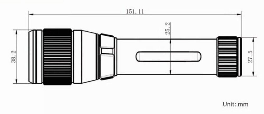 - Dimensions - Length and Lens case outer diameter: 151.11 mm × 38.2 mm (5.95" x 1.5")