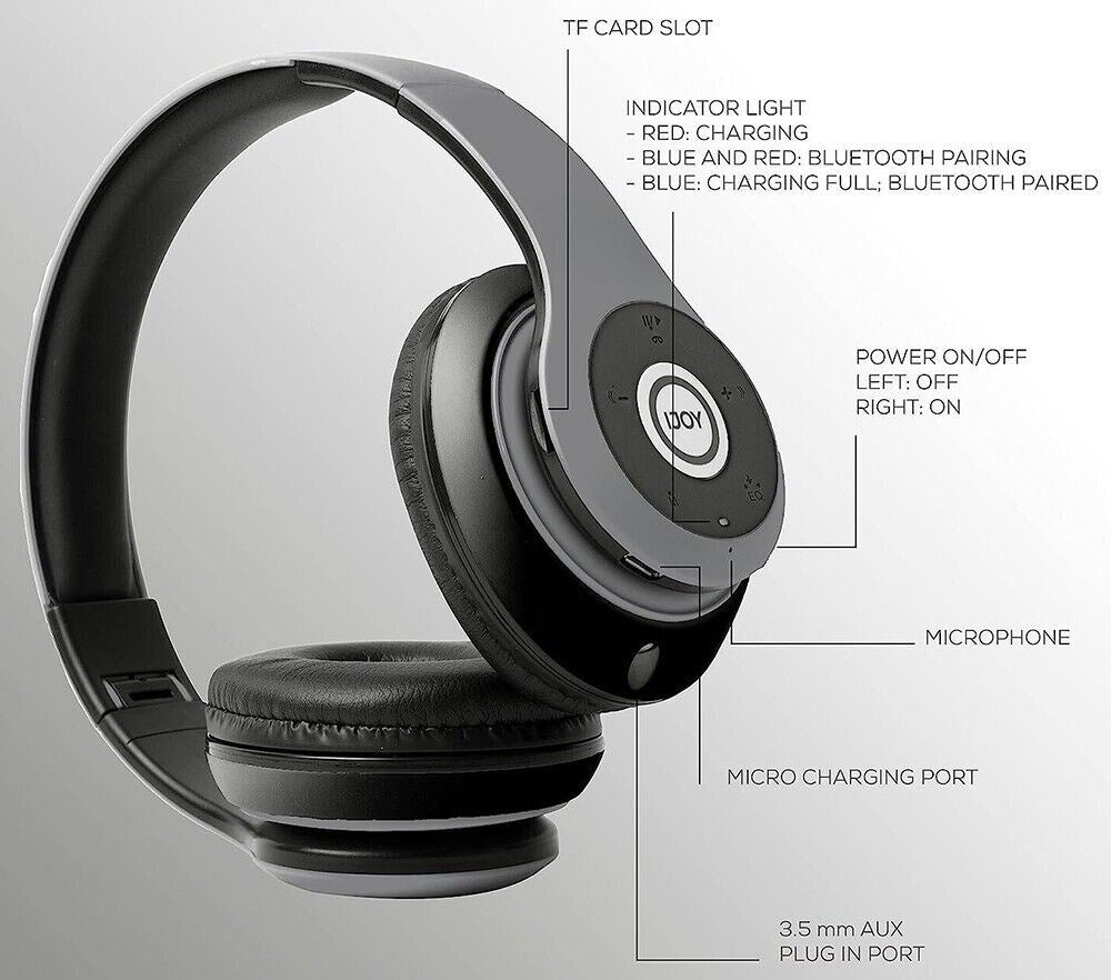 iJOY Logo Premium Wireless On Ear Bluetooth Headphones #LGO-PRE-MBLF