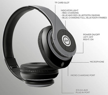 Introducing our Black Bluetooth Headphones - the versatile audio companion you've been looking for. With wireless, AUX, and TF card options, as well as an integrated FM radio, you'll never run out of listening choices. Noise-cancelling and a built-in microphone ensure uninterrupted calls and clear sound. The easy-to-use button controls put you in command. Designed for comfort, with 15 hours of playtime, these over-ear headphones are perfect for music, movies, calls, gaming, and more.