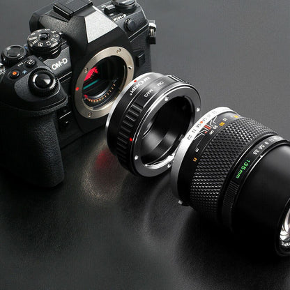K&F Mount Converter Olympus OM Lens to Micro 4/3 Mount Cameras #KF06.145 Compatibility K&F Concept® lens adapters are designed with high precision to the requirements of the lens / camera combination and are produced under the highest quality requirements. The selection of the manufacturing materials and the final surface treatments are precisely tailored to meet the highest demands on durability, stability and reflective properties.