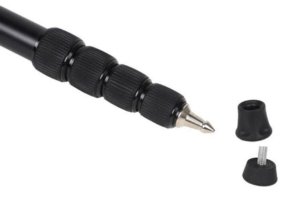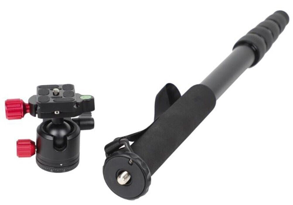 Fold it down to a mere 545mm (including the versatile dual-action ball head with a quick-release plate) for easy transport and quick setup wherever inspiration strikes. This monopod boasts 5 sections, a sturdy 28-16mm tube diameter, and an ultra-portable 0.73kg weight (including the ball head). Choose between spiked or rubber foot – we provide both to give you maximum stability on any terrain. Crafted from durable aluminium alloy with stylish red accents, this monopod is a statement of quality, designed to be your camera’s best friend for years to come.