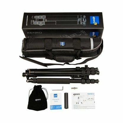 Kenro Tripods are manufactured to exacting standards of quality and are designed to give our customers exceptional value and many years of good reliable service. 1. Compact Design: Designed with the traveller in mind. This tripod is fast and easy to set up. When not in use the legs can be folded back 180 degs for ultra-compactness Specification Number of sections 4 Maximum leg diameter 27mm Minimum leg diameter 19mm Maximum working height 1641mm Normal working height 1411mm Minimum working height 250mm Folded length 470mm Weight 1.88kg Maximum weight load 12kg Maximum Monopod Height 1730mm