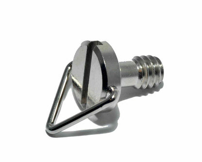 1/4" metal male thread with flat head screwdriver slot and hinged "D" Ring