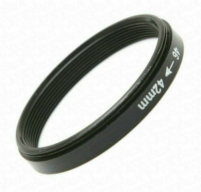 Great quality adapter that allows you to fit any accessory with a T or T2 screw mount (42mm) to a lens with a 46mm filter thread. Very useful for digiscopers! Simply screw this adapter to the T2 lens or accessory and then screw it into the filter thread on the front of your camera's lens. Made from aluminium alloy.