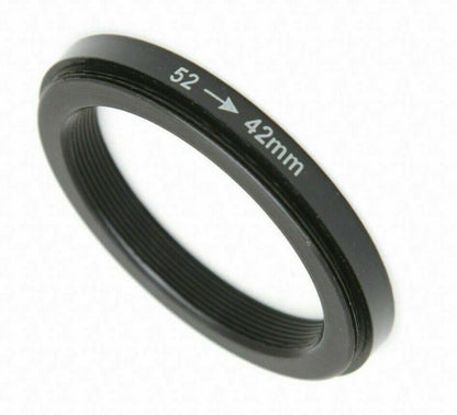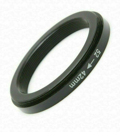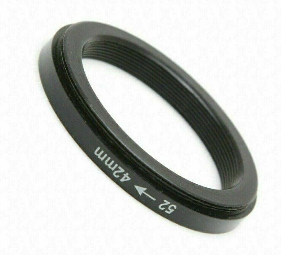 Great quality adapter that allows you to fit any accessory with a T or T2 screw mount (42mm) to a lens with a 52mm filter thread. Very useful for digiscopers! Simply screw this adapter to the T2 lens or accessory and then screw it into the filter thread on the front of your camera's lens. Made from aluminium alloy.
