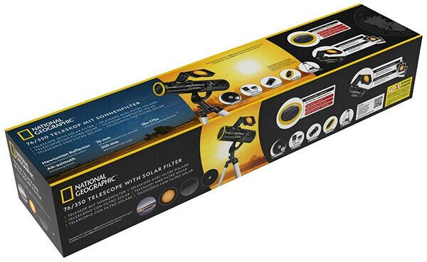 The National Geographic 76/350 Telescope for stargazers is extremely portable, powerful and easy to use. All the required accessories are included, even a small book that introduces you to the starry sky and planetarium software for your computer. The NATIONAL GEOGRAPHIC Newton telescope with solar filter is a highlight in its own right!