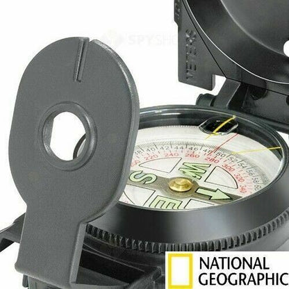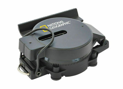 National Geographic Sturdy Compass Floating 360 #9079000 This sturdy compass with a centimetre and a measuring scale has a floating 360° scale and compass needle. The sight wire and slot offers exact sighting of land objects. A practical connector allows for snap hook attachment. WHATS INCLUDED