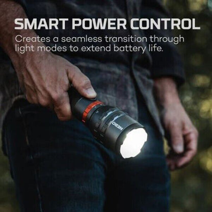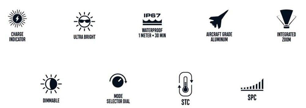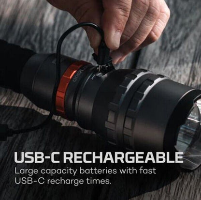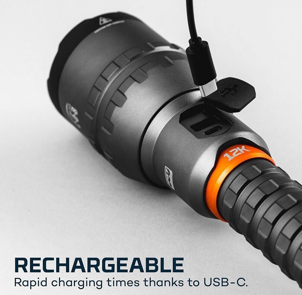The DAVINCI™ 12000 is rechargeable, waterproof (IP67) and equipped with 5 light modes, including the impressive 12,000 lumen turbo mode. This impressively bright flashlight features 2x zoom, Smart Power Control, an ergonomic rubberized grip, and lanyard for convenient carry.