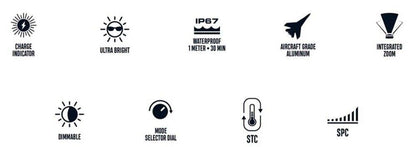 • Strobe (12,000 lumens) - 2 hours / 220 meters