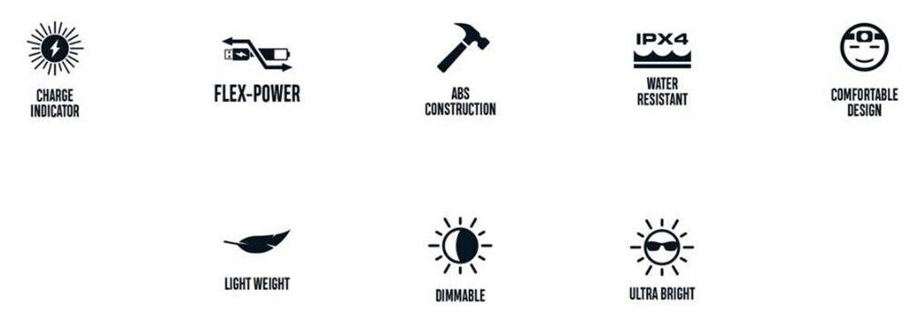 The Einstein™ 1000 by NEBO is a low-profile, compact 1,000 lumen headlamp with 5 light modes featuring flex power. Use the included rechargeable battery or 2 x CR123A batteries.