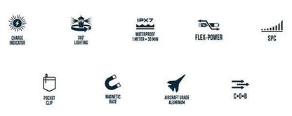 • Strobe (200 lumens) - 2.5 hours / 11 meters