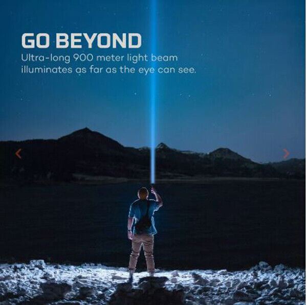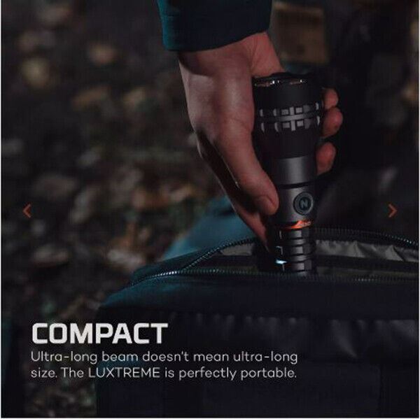 NEBO Luxtreme 500 Lumen USB-C Rechargeable Half-Mile Light Beam Torch The LUXTREME by NEBO is 500 lumens, USB-C rechargeable, and features the most advanced optics ever built into a NEBO flashlight. In high mode, the LUXTREME blasts light up to 900 meters or 2,952 feet away! Combine that with an anodised aircraft-grade aluminum body in NEBO’s flagship Storm Gray color, as well as a 4,000mAh USB-C rechargeable battery and you’ve got yourself one of the best lights that NEBO has ever made. 4 LIGHT MODES • High (500 lumens) - 3 hours / 900 meters FEATURES OPERATION ACCESSORIES BATTERIES DIMENSIONS