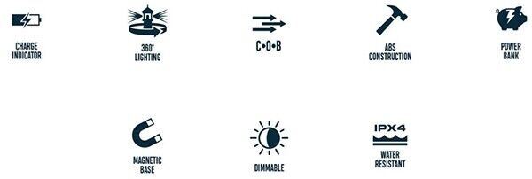 NEBO OMNI 3K 3000 Lumen Rechargeable Worklight + power bank The OMNI 3K is the ultimate, omni-directional work light that boasts a powerful 3,000 lumen, Dual C•O•B output with a red hazard feature. The OMNI 3K features an adjustable, magnetic handle to provide convenient carry, magnetic attachment or a sturdy base for hands-free light. Each C•O•B panel rotates to give light everywhere that you need it, and the dimmer controls give you the right amount of light. Completely rechargeable, the OMNI 3K also features a 4000mAh power bank to charge your USB powered devices. 6 LIGHT MODES DESIGN OPERATION ACCESSORIES BATTERIES SPECS