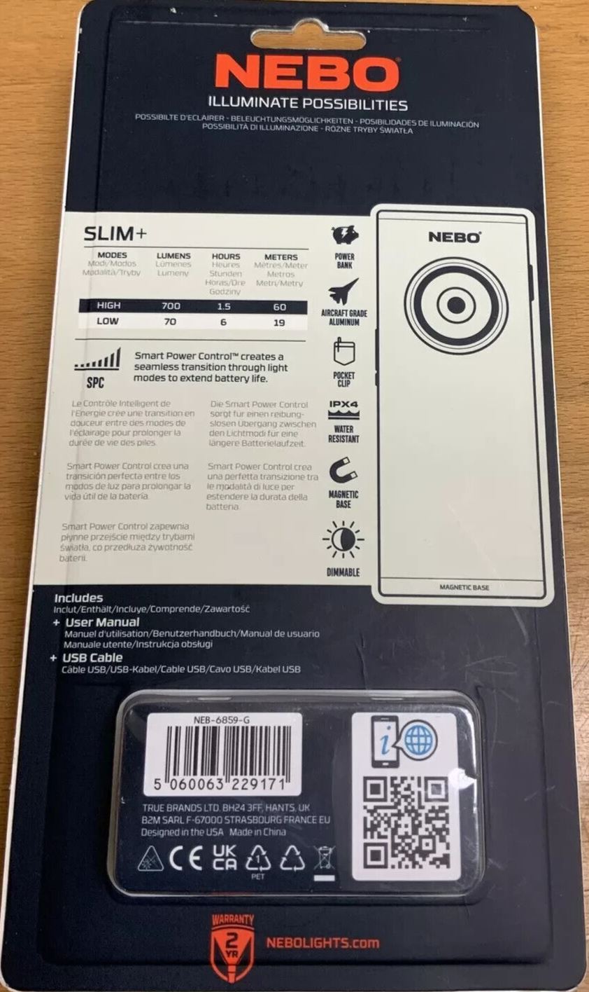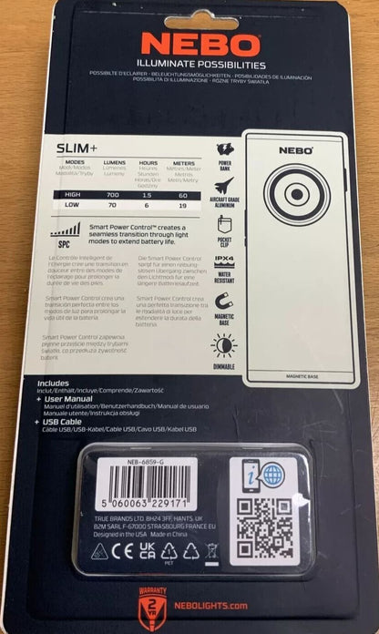 Nebo Slim+ 700 Lumen Rechargeable Pocket Work LED Torch, Laser & Power Bank (UK)